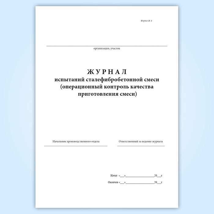 Журнал испытаний сталефибробетонной смеси (операционный контроль качества приготовления смеси) (форма Ж 4) в Сочи купить