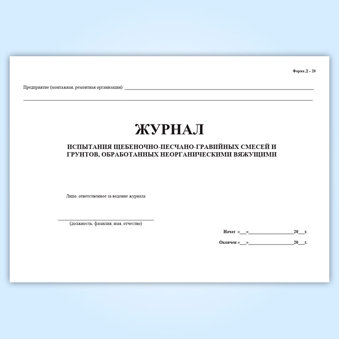 Журнал испытания щебеночно-песчано-гравийных смесей и грунтов, обработанных неорганическими вяжущими в Сочи купить