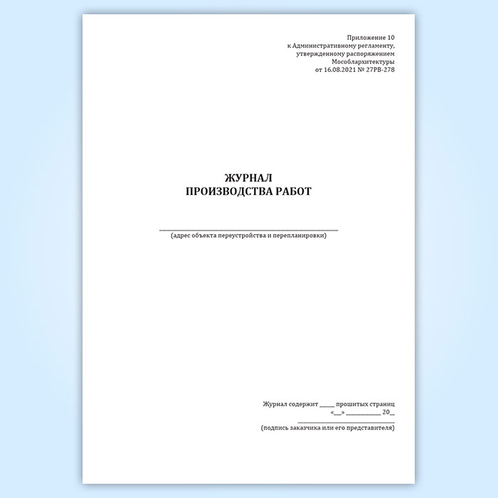 Журнал производства работ (Распоряжение Мособлархитектуры МО от 16.08.2021 N 27РВ-278) в Сочи купить