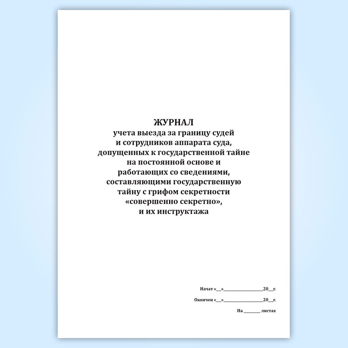 Журнал учета выезда за границу судей и сотрудников аппарата суда, допущенных к государственной тайне на постоянной основе и работающих со сведениями, составляющими государственную тайну с грифом секретности «совершенно секретно», и их инструктажа в Сочи купить
