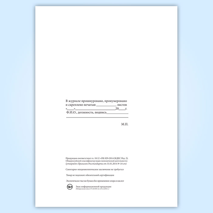 Вы получаете печатную продукцию прошнурованной и c местом для вашей печати в соответствии с действующими нормативными документами: