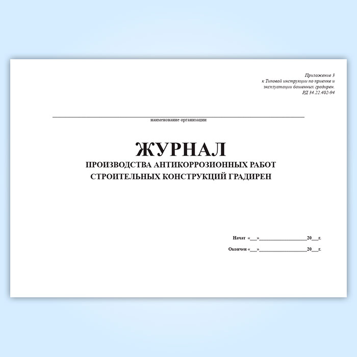Журнал производства антикоррозионных работ строительных конструкций градирен в Сочи купить