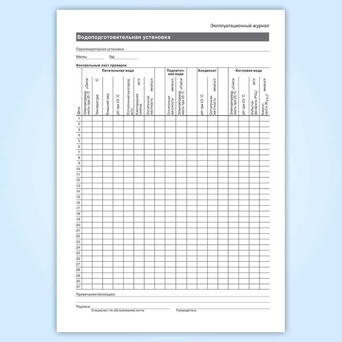 Сменный журнал водоподготовительной установки с Н-катионитными фильтрами в Сочи купить