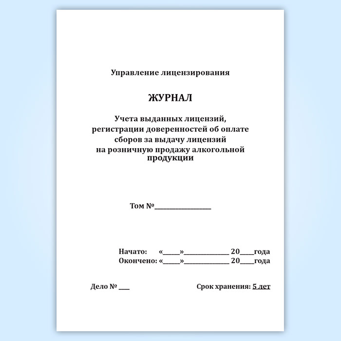 Журнал учета выданных лицензий, регистрации доверенностей об оплате сборов за выдачу лицензий на розничную продажу алкогольной продукции в Сочи купить