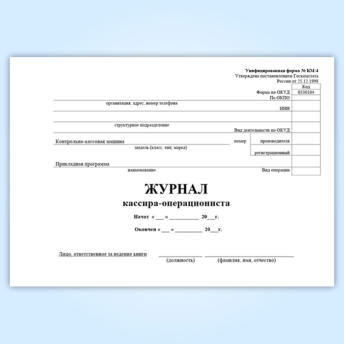 Журнал кассира-операциониста, горизонтальный (форма № КМ-4) в Сочи купить