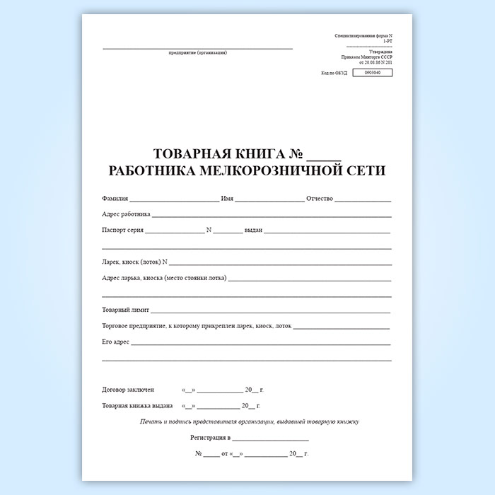 Товарная книга работника мелкорозничной сети. Специализированная (форма № 1-РТ) в Сочи купить
