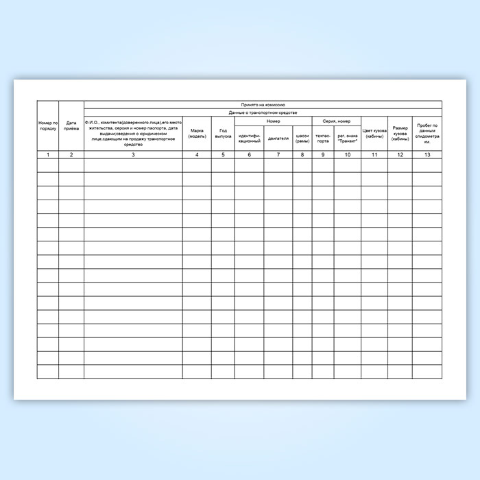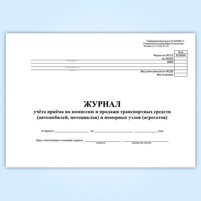 Журнал учета приема на комиссию и продажи транспортных средств (автомобилей, мотоциклов) и номерных узлов (агрегатов) (форма № КОМИС-8) в Сочи купить