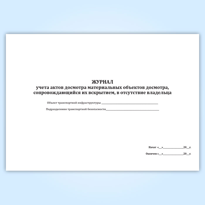 Журнал учета актов досмотра материальных объектов досмотра, сопровождающийся их вскрытием, в отсутствие владельца в Сочи купить