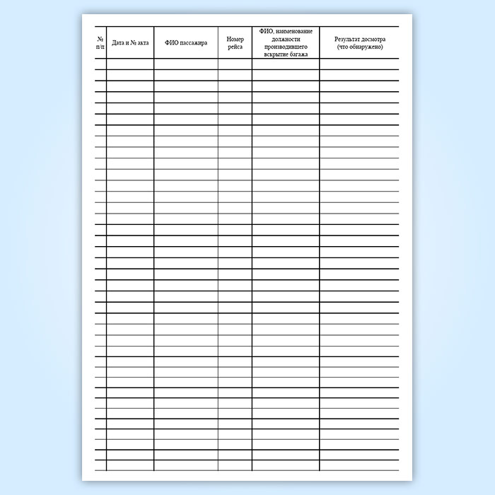 Журнал учета актов досмотра багажа в отсутствии пассажиров в Сочи купить
