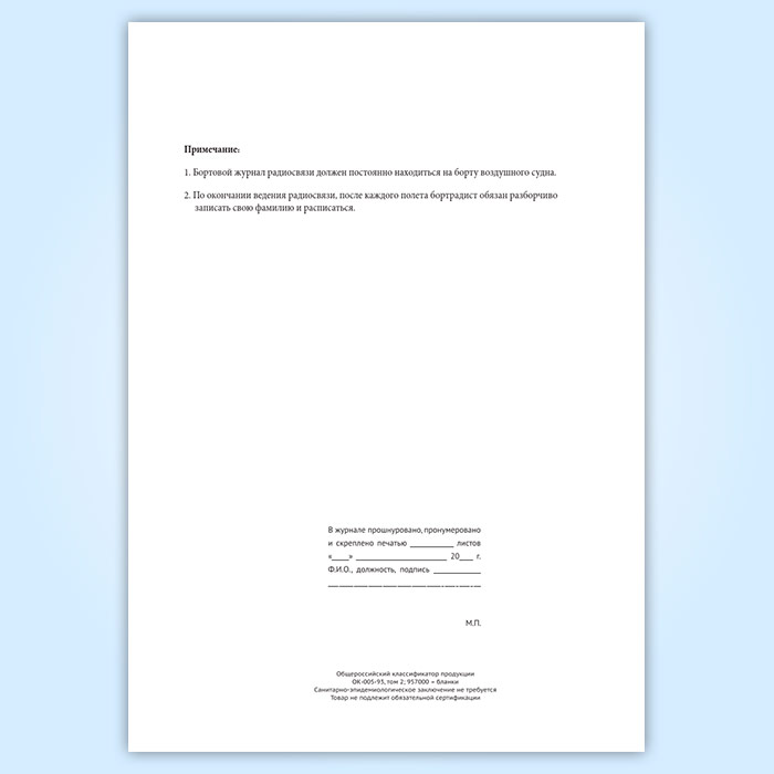 Бортовой журнал радиосвязи воздушного судна авиапредприятия в Сочи купить