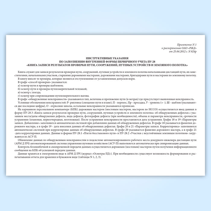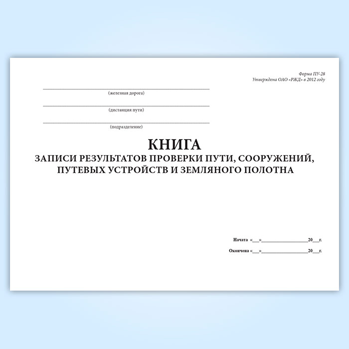 Книга записи результатов проверки пути, сооружений, путевых устройств и земляного полотна (форма ПУ-28) в Сочи купить