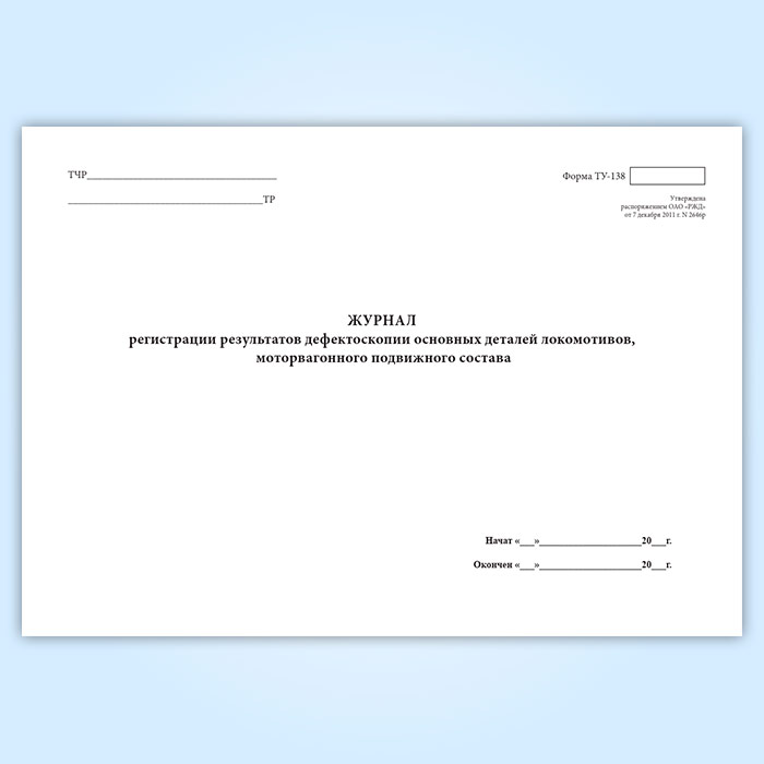Журнал регистрации результатов дефектоскопии основных деталей локомотивов, моторвагонного подвижного состава (форма ТУ-138) в Сочи купить