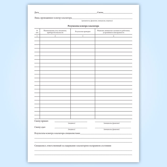 Журнал осмотра эскалатора в Сочи купить