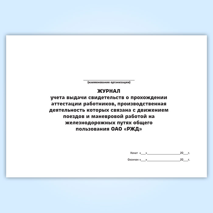 Журнал учета выдачи свидетельств о прохождении аттестации работников, производственная деятельность которых связана с движением поездов и маневровой работой на железнодорожных путях общего пользования ОАО «РЖД» в Сочи купить