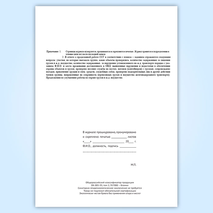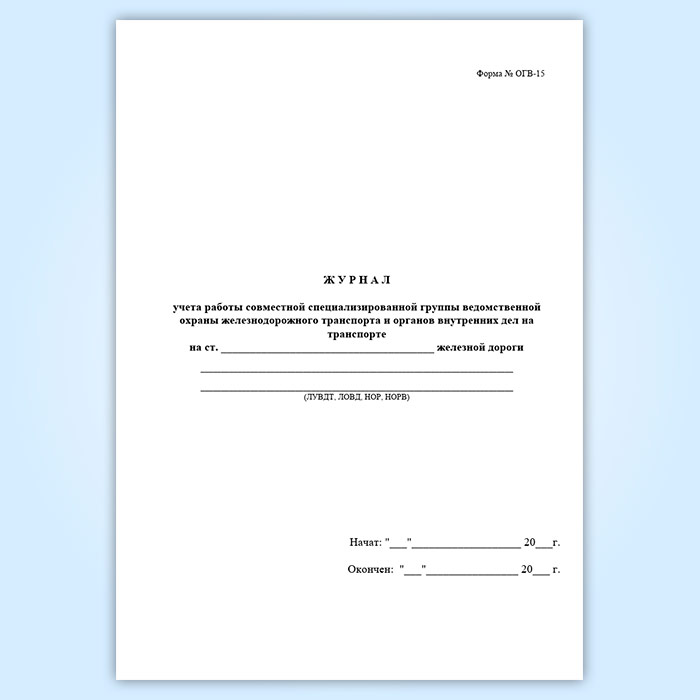 Журнал учета работы совместной специализированной группы ведомственной охраны железнодорожного транспорта и органов внутренних дел на транспорте (форма № ОГВ-15) в Сочи купить