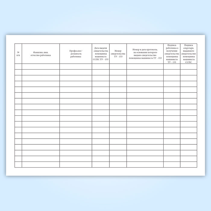 Журнал выдачи и регистрации удостоверений помощника машиниста ССПС (форма ТУ-153) в Сочи купить