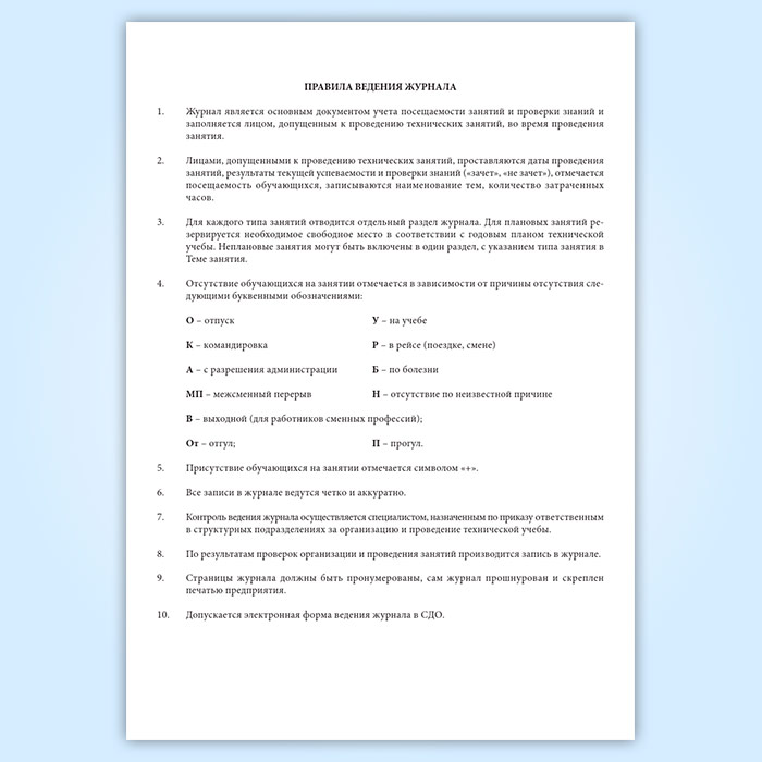 Журнал учета посещаемости занятий и успеваемости по технической учебе в Сочи купить