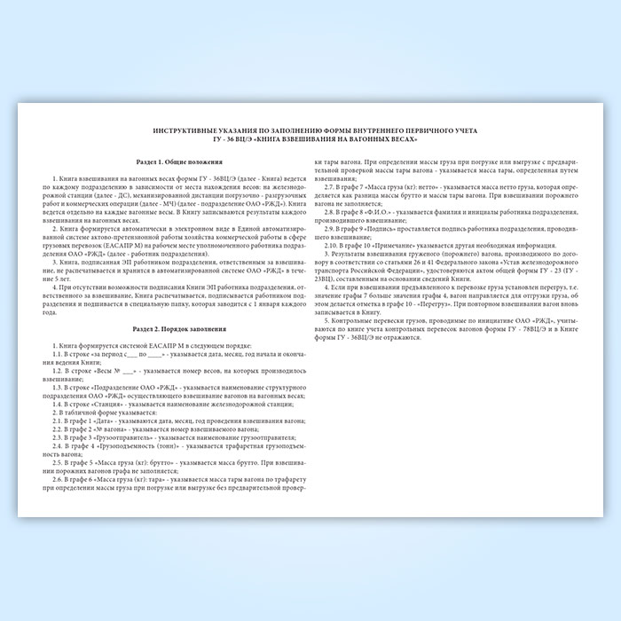 Книга взвешивания на вагонных весах (форма ГУ-36ВЦ/Э) в Сочи купить