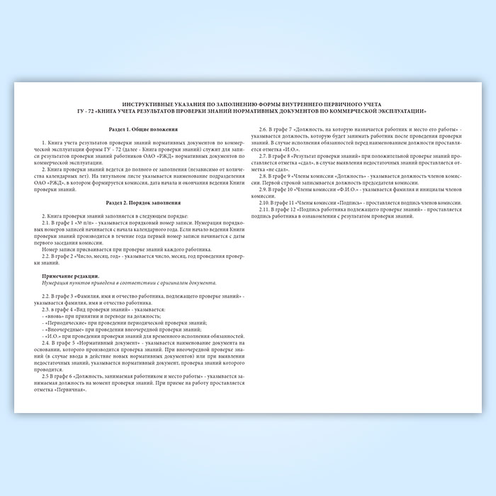 Книга учета результатов проверки знаний нормативных документов по коммерческой эксплуатации (форма ГУ-72) в Сочи купить
