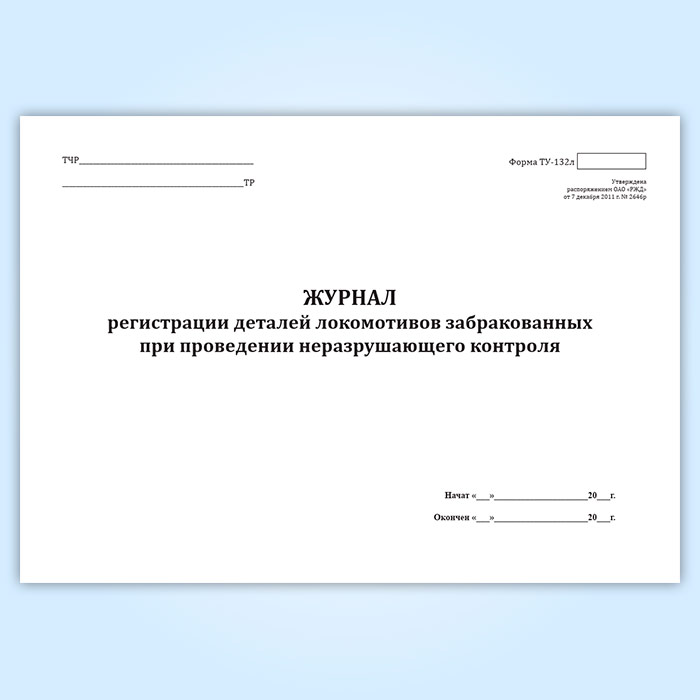 Журнал регистрации деталей локомотивов, забракованных при проведении неразрушающего контроля (форма ТУ-132л) в Сочи купить