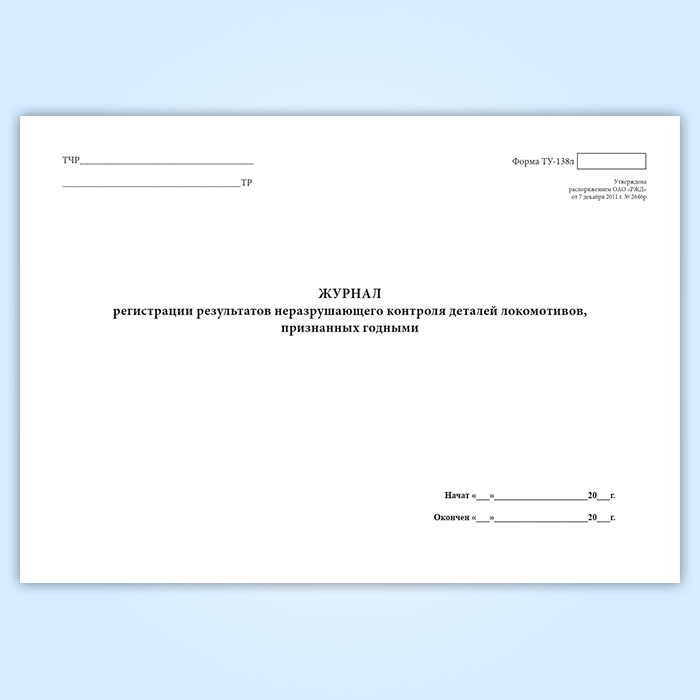 Журнал регистрации результатов неразрушающего контроля деталей локомотивов, признанных годными (форма ТУ-138л) в Сочи купить