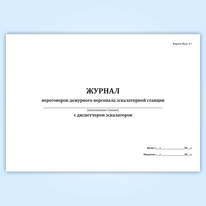 Журнал переговоров дежурного персонала эскалаторной станции с диспетчером эскалаторов (форма Муэс-17) в Сочи купить