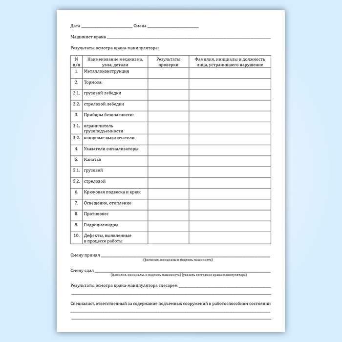 Вахтенный журнал машиниста грузоподъемного крана-манипулятора в Сочи купить