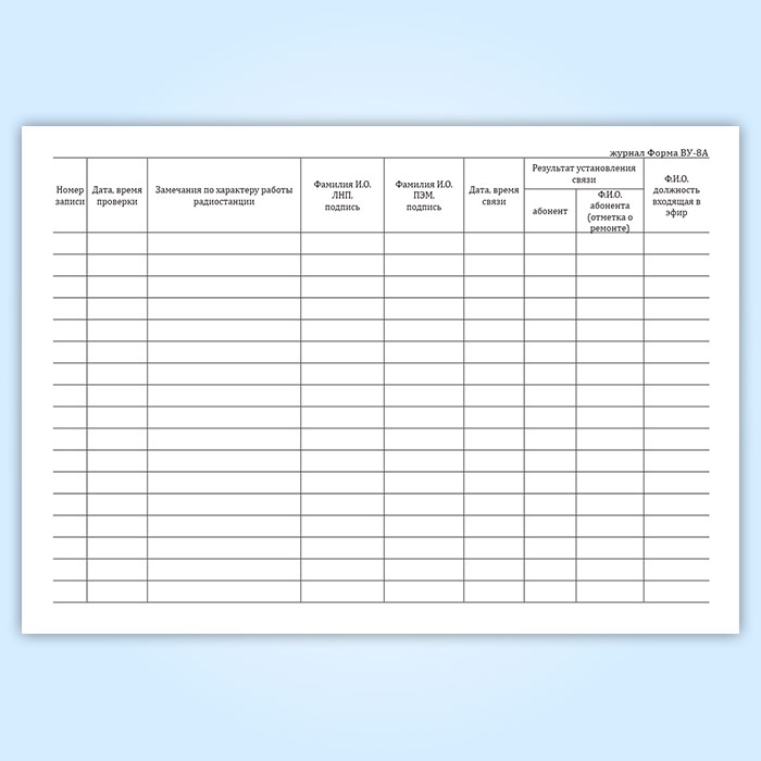 Журнал работы поездной радиостанции (форма ВУ-8А) в Сочи купить