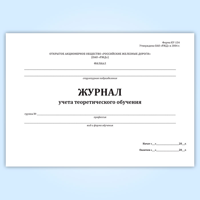 Журнал учета теоретического обучения (форма КУ-154) в Сочи купить