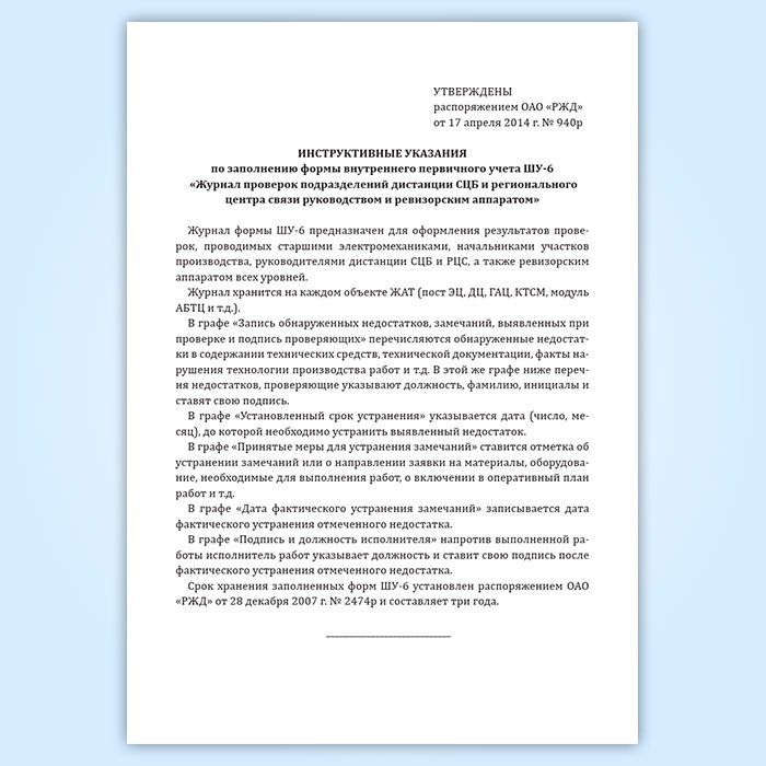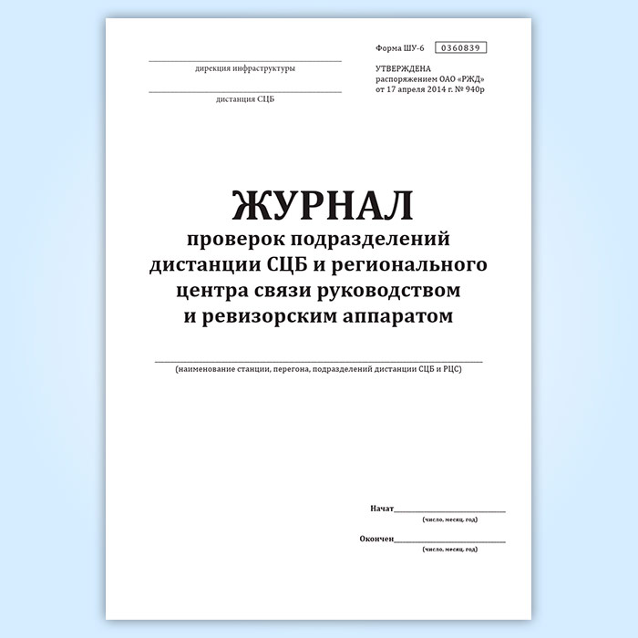 Журнал проверок подразделений дистанции СЦБ и регионального центра связи руководством и ревизорским аппаратом (форма ШУ-6) в Сочи купить