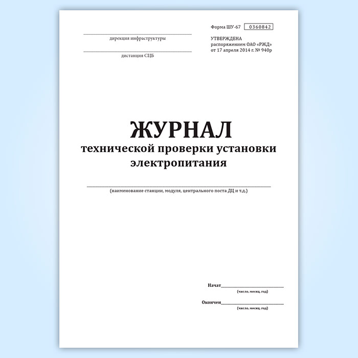 Журнал технической проверки установки электропитания (форма ШУ-67) в Сочи купить