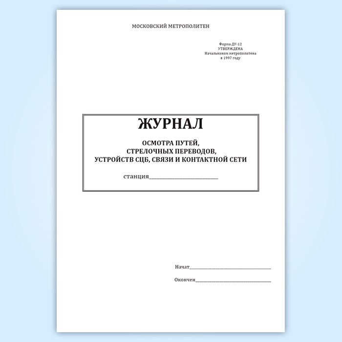 Журнал осмотра путей, стрелочных переводов, устройств СЦБ, связи и контактной сети (форма ДУ-12) в Сочи купить