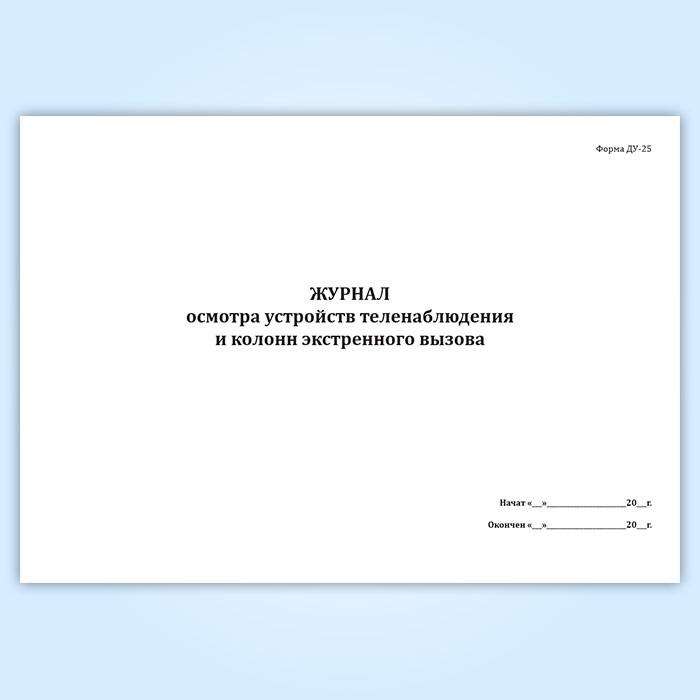 Журнал осмотра устройств теленаблюдения и колонн экстренного вызова (форма ДУ-25) в Сочи купить