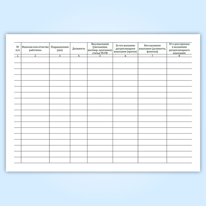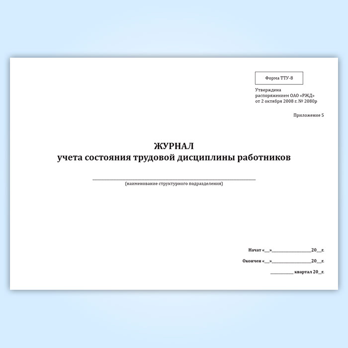 Журнал учета состояния трудовой дисциплины работников (форма ТТУ-8) в Сочи купить