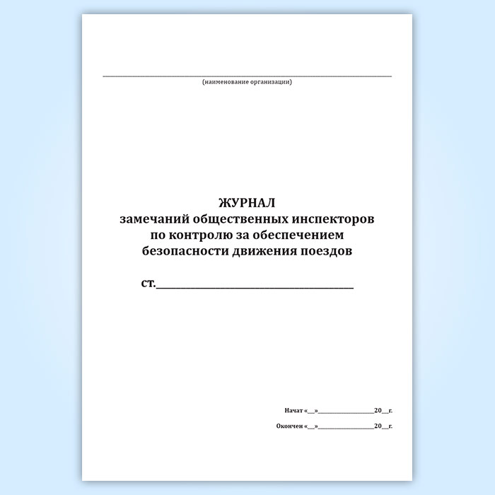 Журнал замечаний общественных инспекторов по контролю за обеспечением безопасности движения поездов в Сочи купить