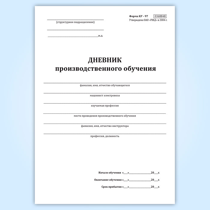 Дневник производственного обучения (форма КУ-97) в Сочи купить