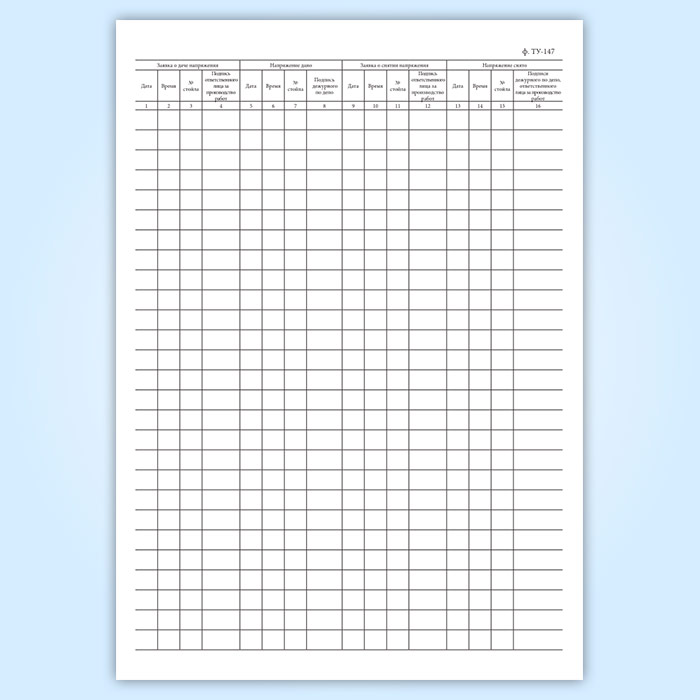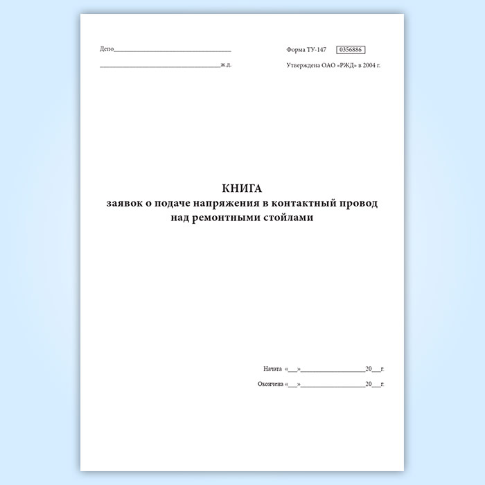 Книга заявок о подаче напряжения в контактный провод над ремонтными стойлами (форма ТУ-147) в Сочи купить