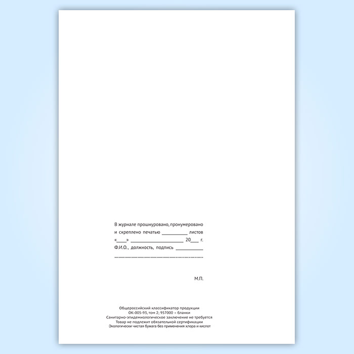 Вы получаете печатную продукцию прошнурованной и c местом для вашей печати в соответствии с действующими нормативными документами:
