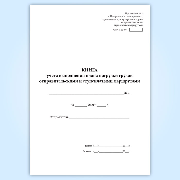 Книга учета выполнения плана погрузки грузов отправительскими и ступенчатыми маршрутами (форма ГУ-95) в Сочи купить