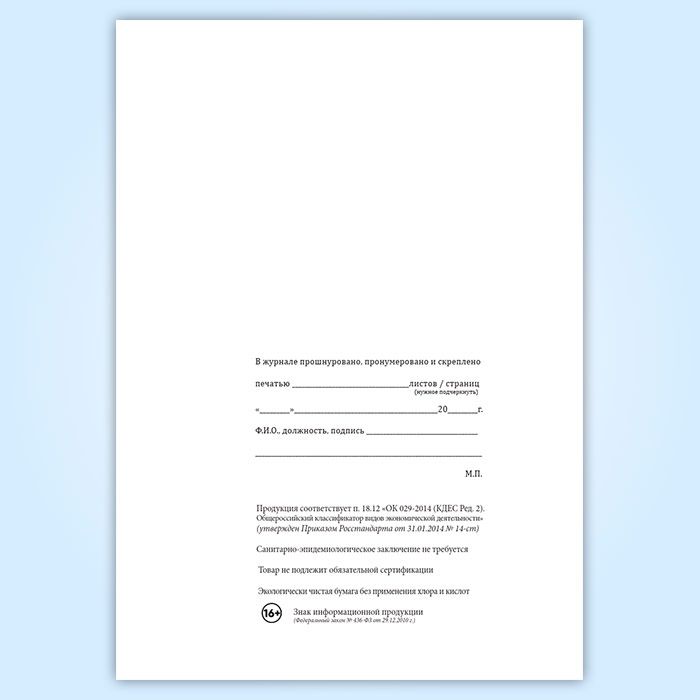 Вы получаете печатную продукцию прошнурованной и c местом для вашей печати в соответствии с действующими нормативными документами: