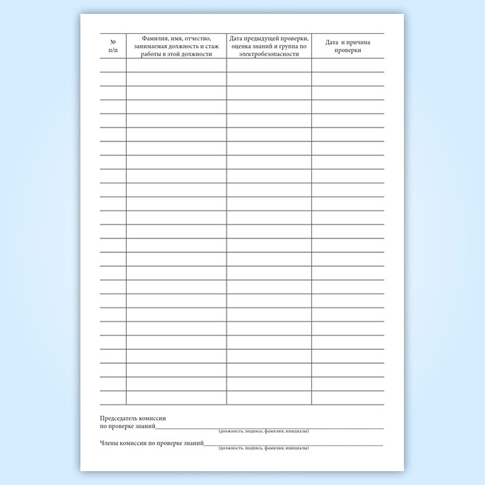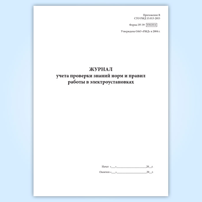 Журнал учета проверки знаний норм и правил работы в электроустановках (форма ЭУ-39) в Сочи купить