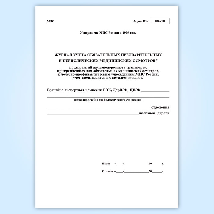Журнал учета обязательных предварительных и периодических медицинских осмотров (форма НУ-1) в Сочи купить