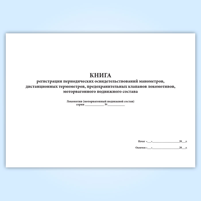 Книга регистрации периодических освидетельствований манометров, дистанционных термометров, предохранительных клапанов локомотивов, моторвагонного подвижного состава (форма ТКУ-8) в Сочи купить