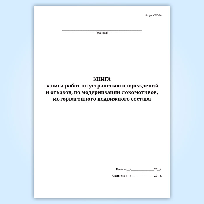 Книга записи работ по устранению повреждений и отказов, по модернизации локомотивов, моторвагонного подвижного состава (форма ТУ-30) в Сочи купить