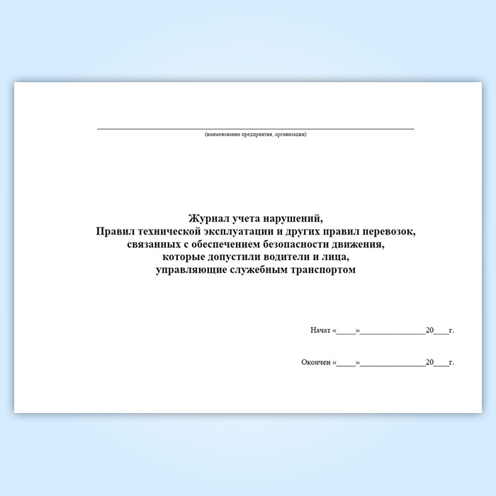 Журнал учета нарушений, правил технической эксплуатации и других правил перевозок, связанных с обеспечением безопасности движения, которые допустили водители и лица, управляющие служебным транспортом в Сочи купить