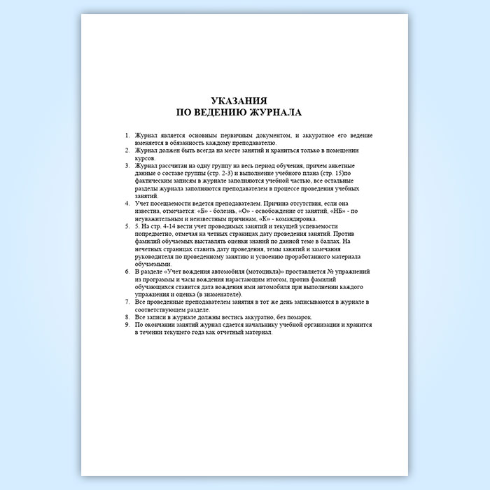 Журнал учета занятий по подготовке водителей транспортных средств категории «В» в Сочи купить