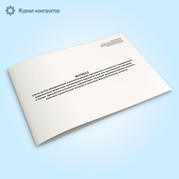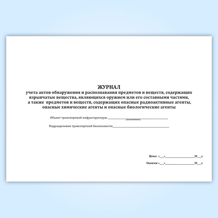 Журнал учета актов обнаружения и распознавания предметов и веществ, содержащих взрывчатые вещества, являющихся оружием или его составными частями, а также предметов и веществ, содержащих опасные радиоактивные агенты, опасные химические агенты и опасные биологические агенты в Сочи купить
