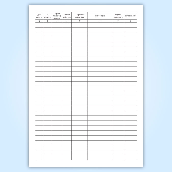 Журнал выдачи пропусков в период временного ограничения движения транспорта в Сочи купить