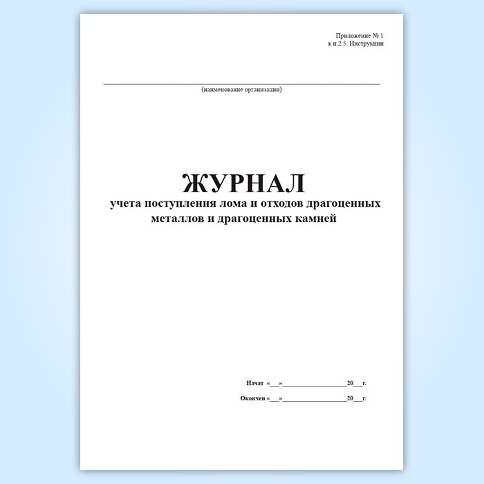 Журнал учета поступления лома и отходов драгоценных металлов и драгоценных камней в Сочи купить