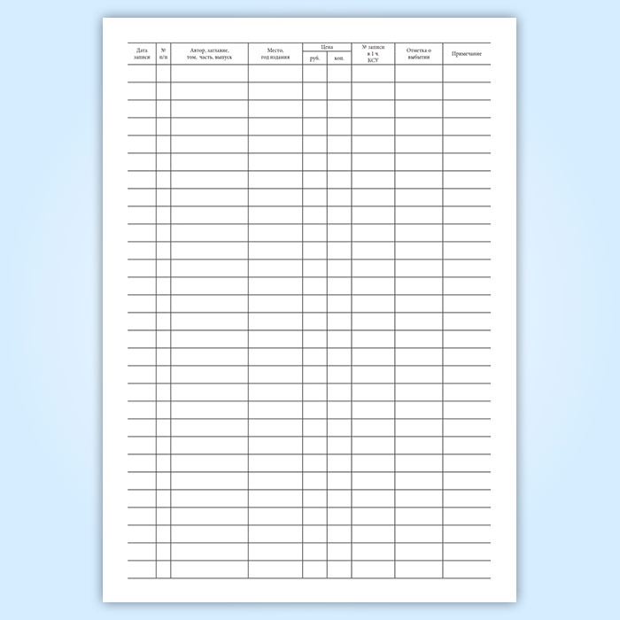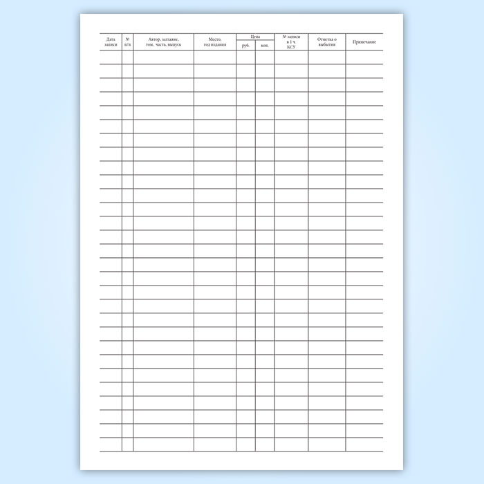 Регистрационная книга учетных карточек многоэкземплярной литературы в Сочи купить